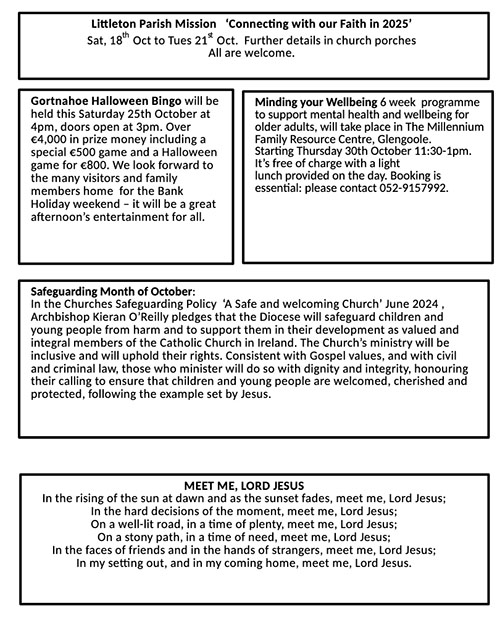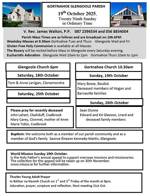 PARISH NEWSLETTER All emails can now be directed before Thursday 6pm to: gortnahoeglengooleparish@gmail.com or to: Nic Wilson, Carmel Troy, Stella Lanigan and Rena Ryan.